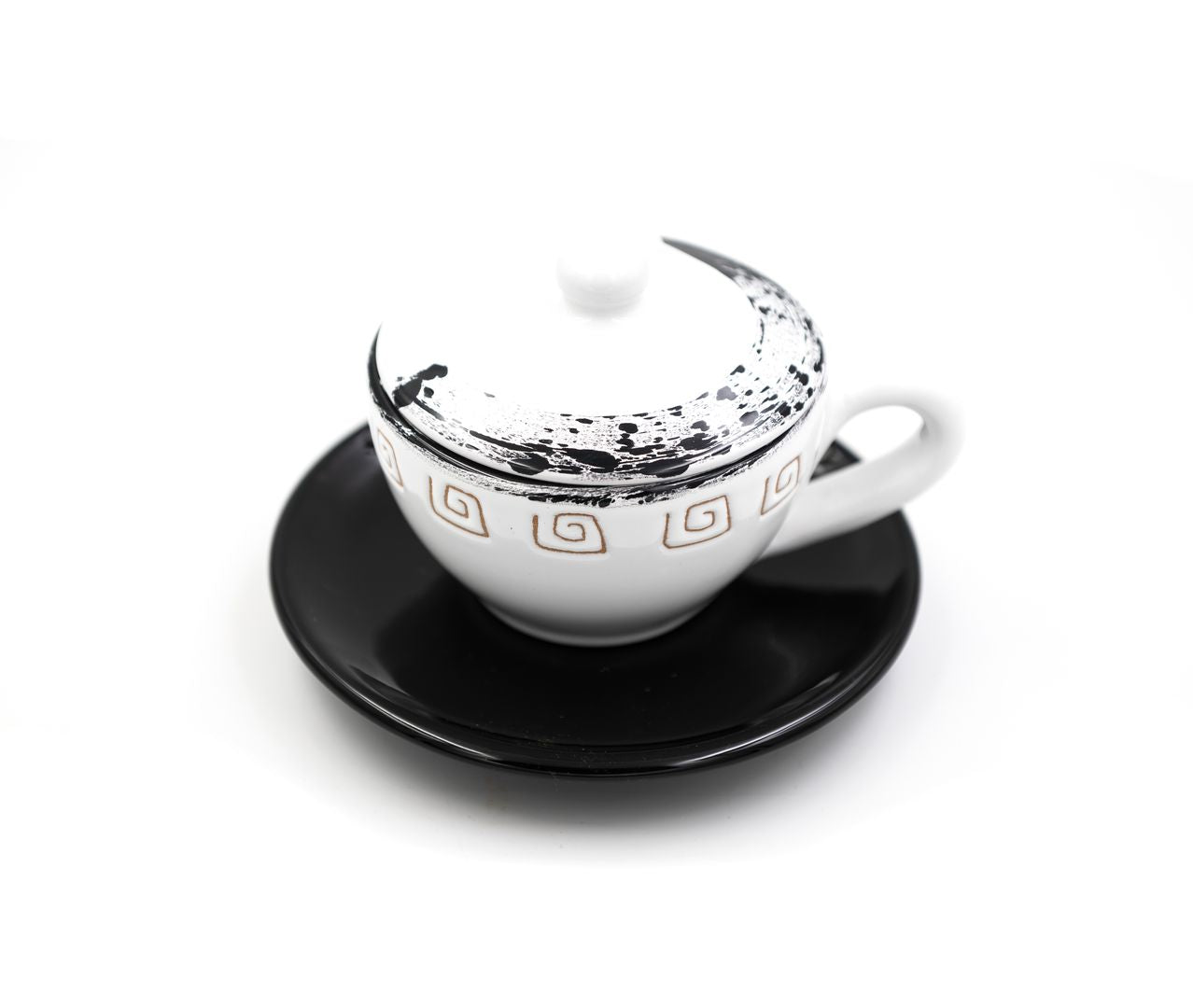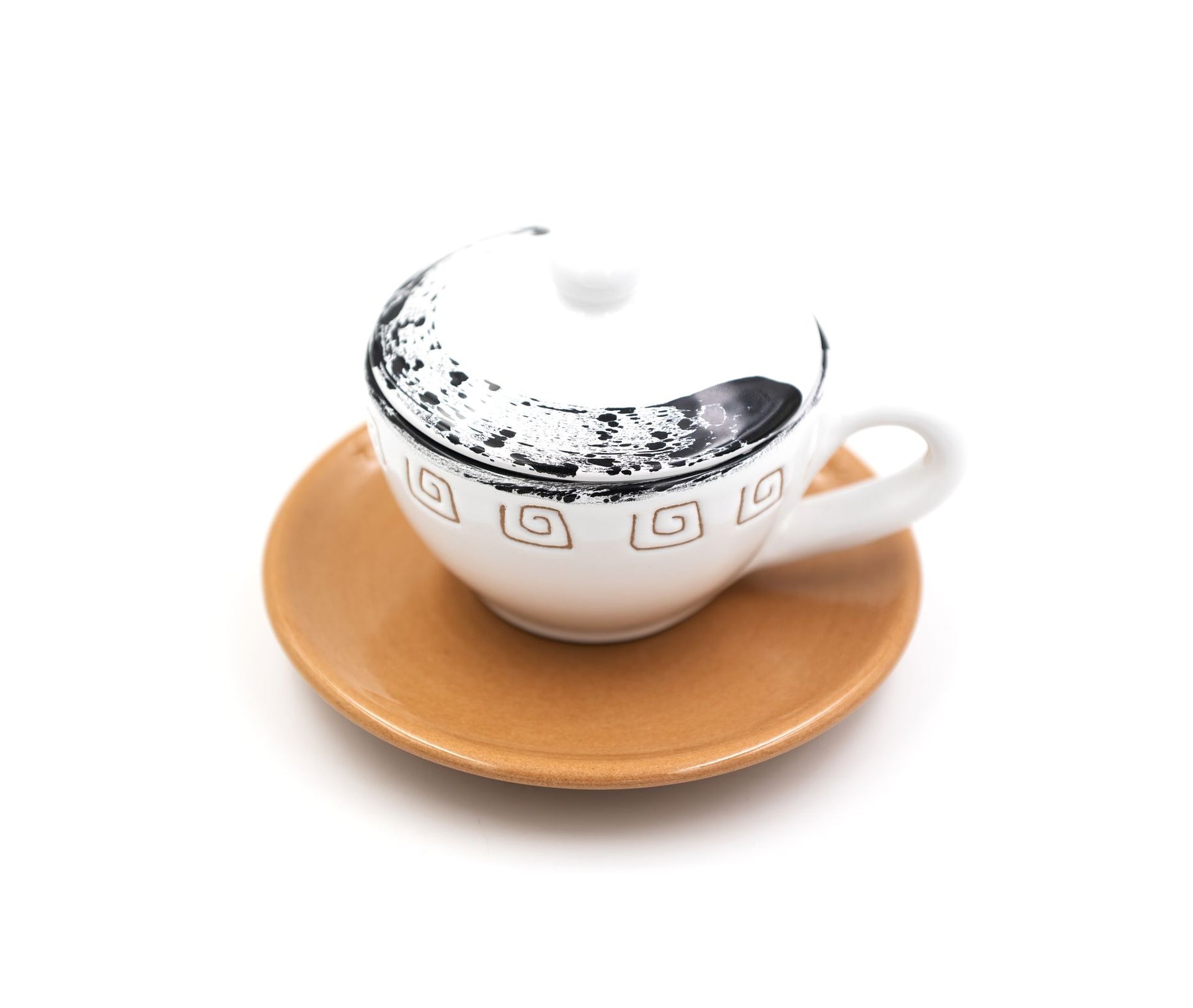 Tazza Tisana con piattino e coperchio Linea Ichnos cm 10x6 circa.